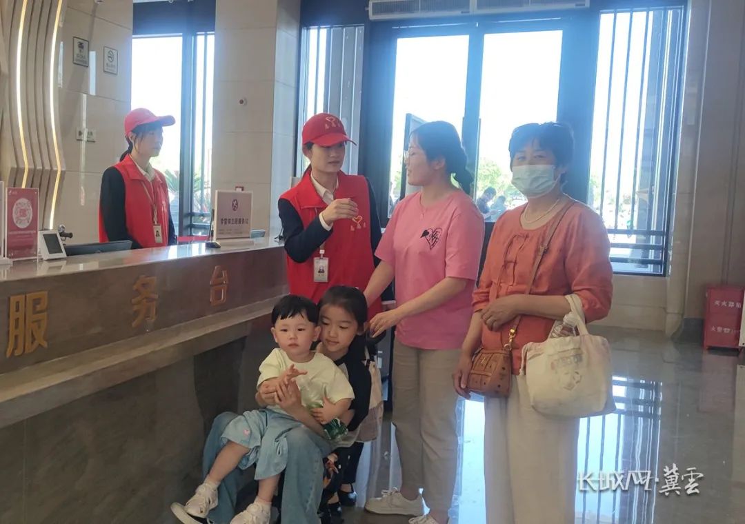 青年團員志愿者為游客辦理兒童推車服務。通訊員 于麗娟 攝