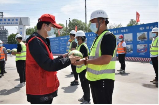 慰問過程中,大運河集團青年志愿者還向廣大工友發(fā)放《安全防護手冊》百余冊,將安全知識送進建設(shè)一線。