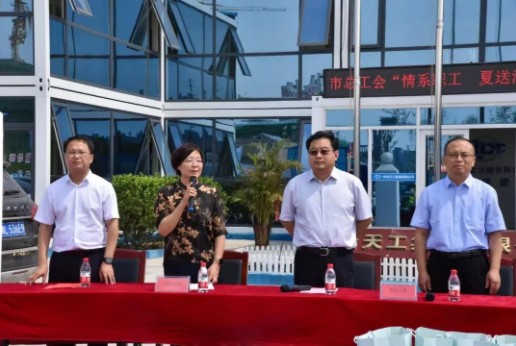 為保證工程建設(shè)又好又快發(fā)展,保障生產(chǎn)一線建設(shè)者人身安全與身心健康,幫助從事高溫作業(yè)的戶外工作者平安度夏,7月18日,滄州市總工會、大運河集團在中國大運河非物質(zhì)文化遺產(chǎn)展示館項目建設(shè)工地開展“夏日送清涼”活動。市總工會黨組書記、常務(wù)副主席張連卿,市總工會黨組成員、副主席馬廣峰,大運河集團黨委書記、董事長韓海霞,大運河集團黨委委員、副總經(jīng)理、工會主席李效順出席慰問活動。