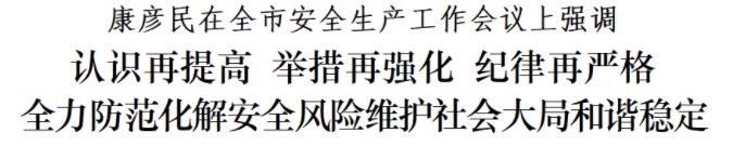 會(huì)議指出,做好安全生產(chǎn)工作、營(yíng)造安全穩(wěn)定的社會(huì)環(huán)境,是壓倒一切的政治任務(wù),是必須扛起的政治責(zé)任。各級(jí)各部門要做到思想認(rèn)識(shí)再提高,始終堅(jiān)持人民至上、生命至上,全面貫徹“疫情要防住、經(jīng)濟(jì)要穩(wěn)住、發(fā)展要安全”重要要求,進(jìn)一步增強(qiáng)抓好安全生產(chǎn)工作的責(zé)任感緊迫感,以嚴(yán)管嚴(yán)防的高壓態(tài)勢(shì),深挖風(fēng)險(xiǎn)隱患、堵塞安全漏洞,確保萬無一失。
