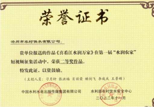 日前,由水利部在全國(guó)范圍內(nèi)組織的第一屆“水潤(rùn)農(nóng)家”短視頻大賽落下帷幕,來(lái)自全國(guó)22個(gè)?。ㄗ灾螀^(qū)、直轄市)的百余部作品“同臺(tái)競(jìng)技”,滄州水務(wù)發(fā)展集團(tuán)有限責(zé)任公司籌拍報(bào)送的作品上榜,榮獲二等獎(jiǎng)。