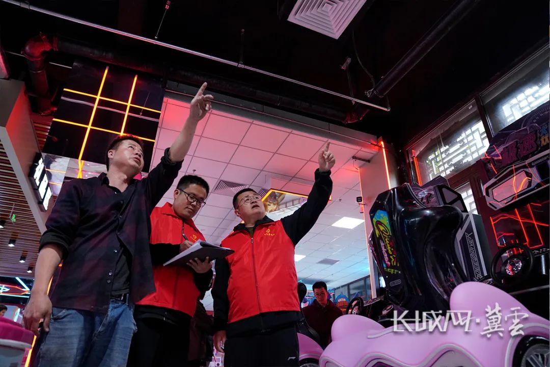 黨員志愿者在幫助滄州坊店鋪經(jīng)營者排查安全隱患。長城網(wǎng)·冀云客戶端記者 崔上 攝