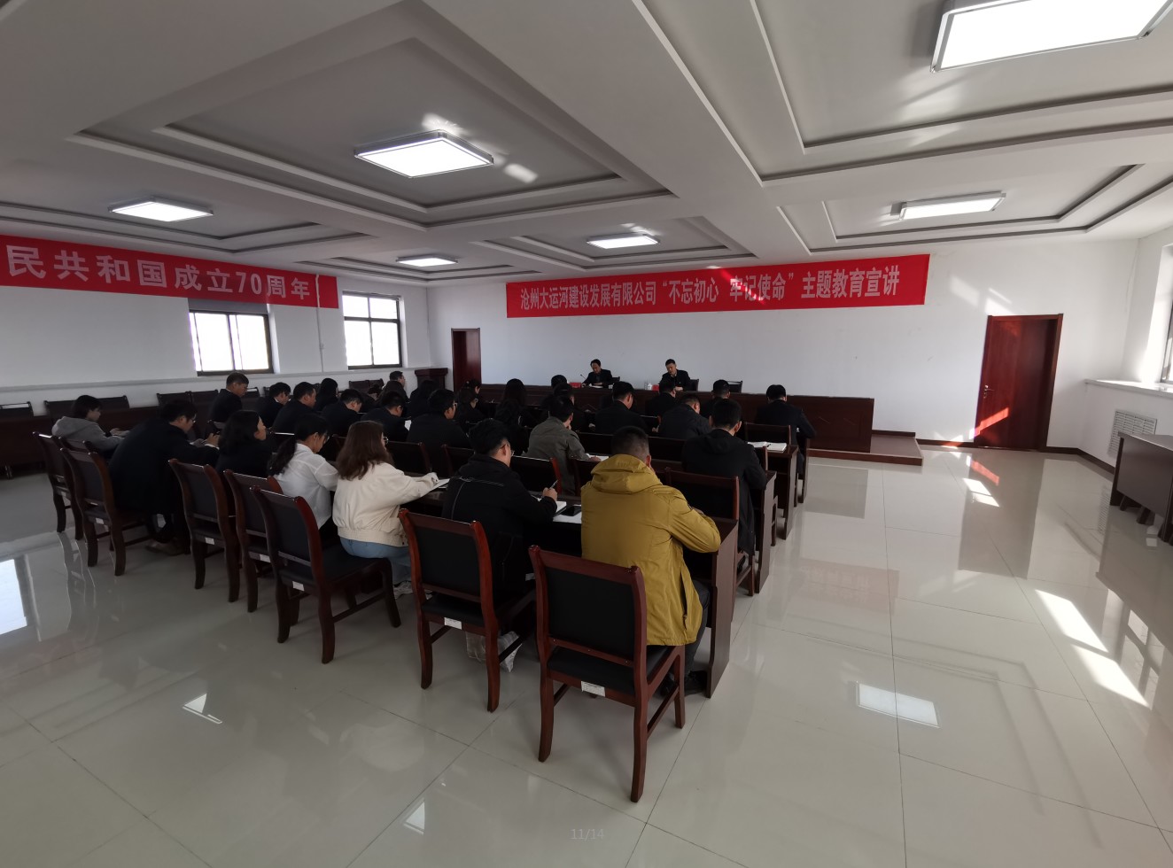 10月29日下午,滄州市大運(yùn)河文化發(fā)展帶建設(shè)辦公室黨組書(shū)記張建亭到我公司開(kāi)展“不忘初心、牢記使命”主題教育宣講活動(dòng)。