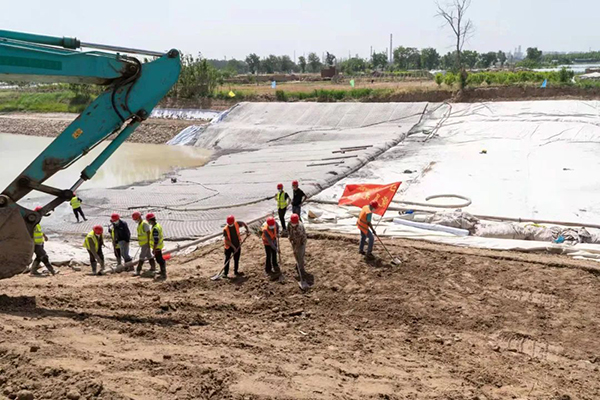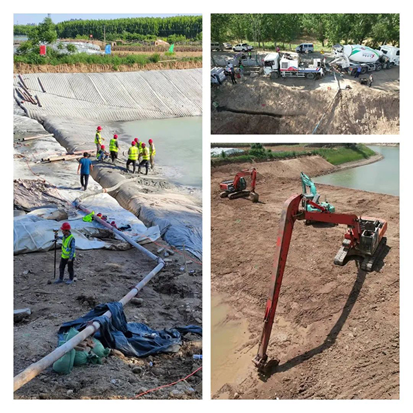 期間,慰問調(diào)研的一行人員就擋壩施工開展情況與項(xiàng)目部負(fù)責(zé)人進(jìn)行了深入交流。據(jù)介紹,該項(xiàng)目主體應(yīng)用的模袋混凝土施工工藝具備操作簡便、施工效率高等優(yōu)勢,尤其在邊坡防護(hù)工程和水下防護(hù)底施工過程中,可直接采用水下傳導(dǎo)澆筑,機(jī)械化程度高,完工后整體穩(wěn)定性強(qiáng),性能好,使用壽命長。
