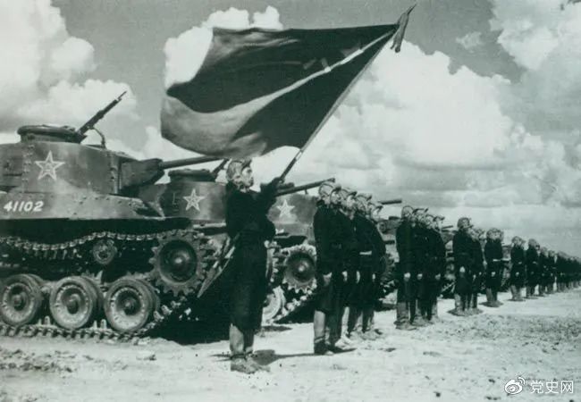 1950年9月,中國人民解放軍裝甲兵領(lǐng)導(dǎo)機(jī)構(gòu)在北京成立。圖為坦克部隊(duì)陣容。