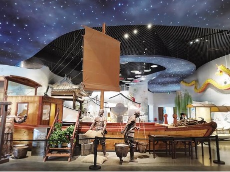 與物質(zhì)文化遺存的弘揚和傳播不同,中國大運河非物質(zhì)文化遺產(chǎn)展示館則對運河非遺數(shù)字化進行了嘗試。隨著園博會的開幕,非遺展示館成了滄州非遺文化的集大成展示地。展館內(nèi)陳列了大運河全域非物質(zhì)文化遺產(chǎn)總覽和滄州非物質(zhì)文化遺產(chǎn)保護成果展,設(shè)置了重點活態(tài)展示項目和若干多媒體互動項目,以及多媒體沉浸式體驗項目。通過數(shù)字內(nèi)容與多媒體技術(shù)的完美應(yīng)用,滿足觀眾探秘運河文化的好奇心和求知欲。