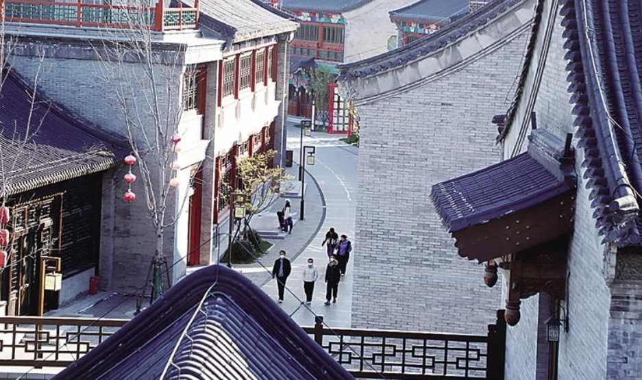 滄州坊商街為南北走向,占地面積67.5畝,街區(qū)建筑均為明清風格。街區(qū)整體呈U型布局,共有22處建筑,包括2座四合院、1座戲樓、1座城關、1座牌樓以及其他仿古建筑。