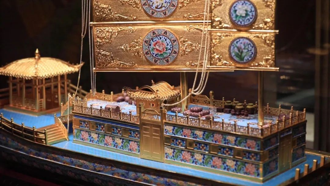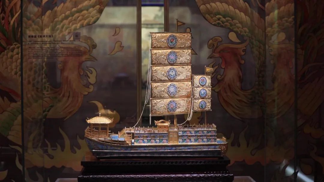 北京,不僅是六朝古都,更是大運(yùn)河的集聚地,被譽(yù)為運(yùn)河上飄來的城市。糖葫蘆、京劇戲臺(tái)、兔爺?shù)鹊龋┪妒阌指骶咛厣?。館內(nèi)展示的景泰藍(lán)作品《船承大運(yùn)》,更是再現(xiàn)了運(yùn)河的繁榮景象,大氣磅礴又不乏巧思。
