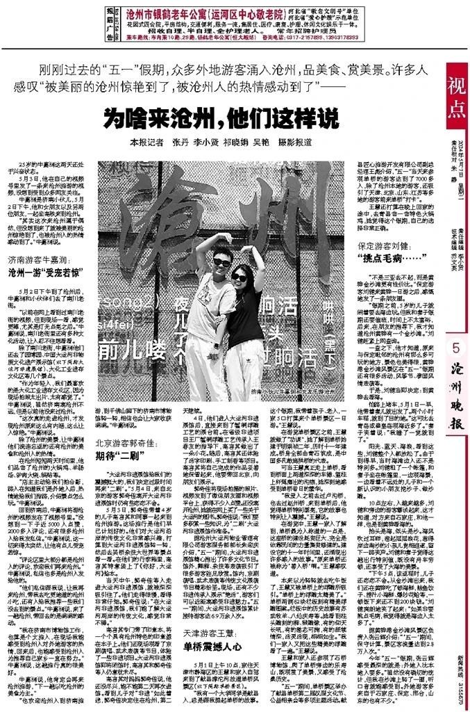 “這次真的走進(jìn)滄州,才發(fā)現(xiàn)滄州原來這么有內(nèi)涵,這么讓人驚艷?!迸<螡櫿f。