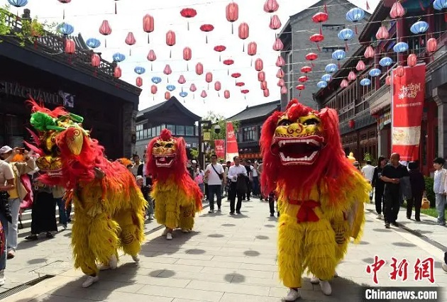 5月1日,滄州坊商街進行非遺項目滄州獅舞表演。傅新春 攝