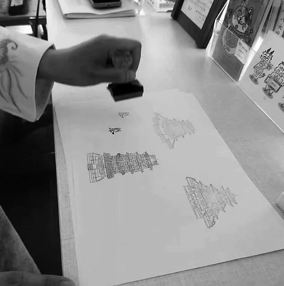 黃強看到,有的人自己帶著白紙來蓋章,有的帶著筆記本來蓋章。這些印章上的圖案有清風(fēng)樓、南川樓、朗吟樓等滄州地標性建筑。
