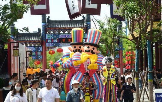 U型布局的商街通衢開(kāi)闊,雜技雕塑、拴馬樁、鏢旗鏢箱等景觀小品隨處可見(jiàn);明清風(fēng)格的建筑,處處飛檐斗拱、雕梁畫(huà)棟。漫步街區(qū),還能偶遇各類文藝表演和互動(dòng)巡游。今年“五一”剛開(kāi)街的滄州坊,是大運(yùn)河畔的“新晉網(wǎng)紅”。