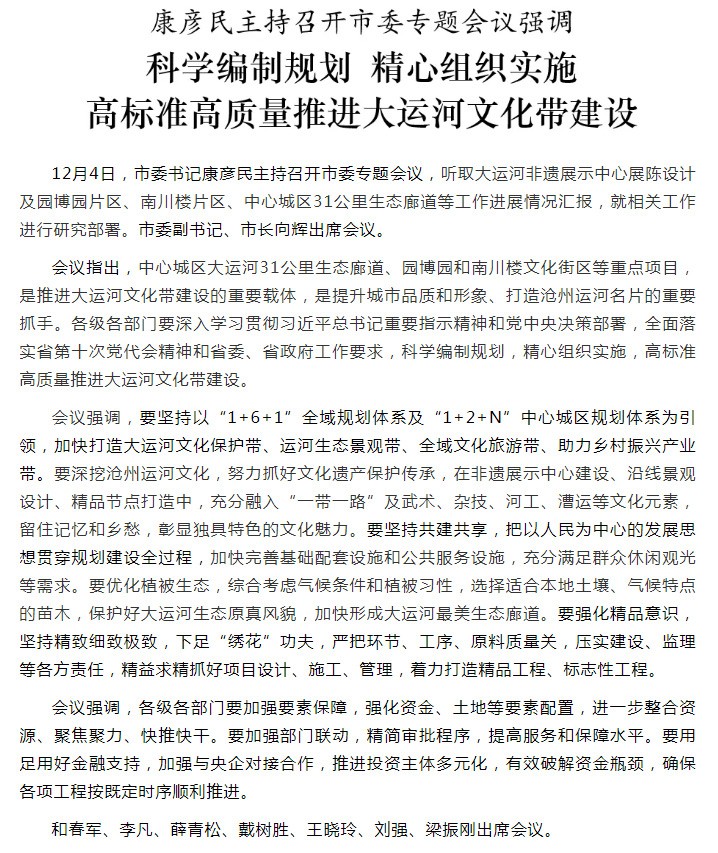 康彥民:科學(xué)編制規(guī)劃 精心組織實(shí)施 高標(biāo)準(zhǔn)高質(zhì)量推進(jìn)大運(yùn)河文化帶建設(shè)