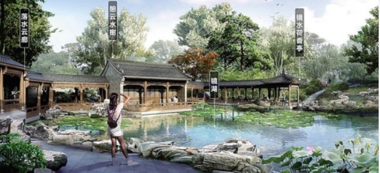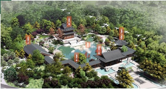 展現(xiàn)宋式建筑特色的要數(shù)“翠云禪茶”,主建筑翠云樓,屋檐滴水,雕梁繡柱,別有一番韻味;“云雅晚香”處的晚香樓,展現(xiàn)大名府文化的同時(shí),也體現(xiàn)“執(zhí)政為民,廉潔奉公”的時(shí)代價(jià)值觀;“云月挹芬”,建筑與晚香樓相呼應(yīng),還原晚香堂外水池蓮藕、遍種黃花的場(chǎng)景?!傲杞窍阍啤碧幍牧锜熗?,位于制高點(diǎn)處,內(nèi)瞰園景,外攬山水,靈動(dòng)的涌泉,漣漪陣陣,成為園內(nèi)外的視覺焦點(diǎn);“宋城煙云”則將掩埋在歷史深處等待挖掘的宋城,以抽象意境的形式展現(xiàn)在世人面前。