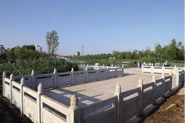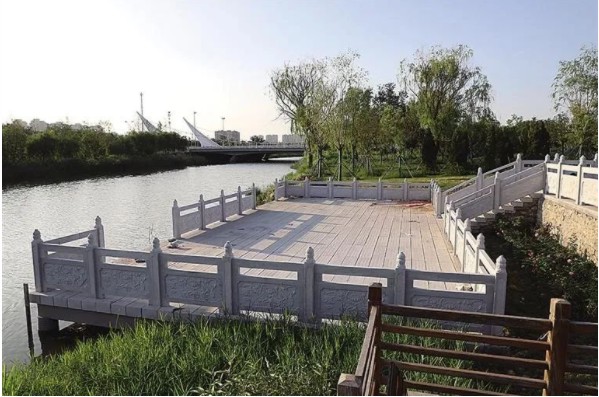 建設者將新建碼頭與大運河文化帶相融合,重現(xiàn)古代大運河滄州段的繁榮景象。大部分碼頭在原碼頭附近修建,碼頭名稱已沿用千年,保留了大運河的厚重歷史感。在建設中,他們還選用青白相間的大理石材地板磚鋪裝碼頭,在圍欄中間采用石雕的荷花,彰顯滄州這座城市的歷史韻味。