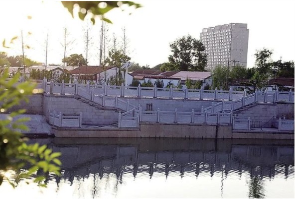 沿著運河向北走,來到運河公園碼頭。這個碼頭位于運河公園入口處北側(cè)西岸,長18.5米、寬6.3米,修建了臨水木棧道。離此處不遠,就是強珍墓、博施醫(yī)院舊址等。