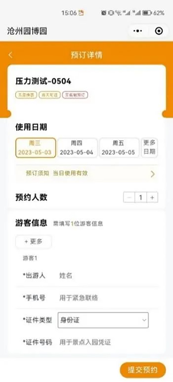 每日預(yù)約名額將于前一日10:00開(kāi)放,如需預(yù)約,請(qǐng)于參觀前一天(及以上)在“獅城園博園”微信小程序中,添加本人身份證號(hào)及姓名,選擇入園日期提交訂單,完成預(yù)約。