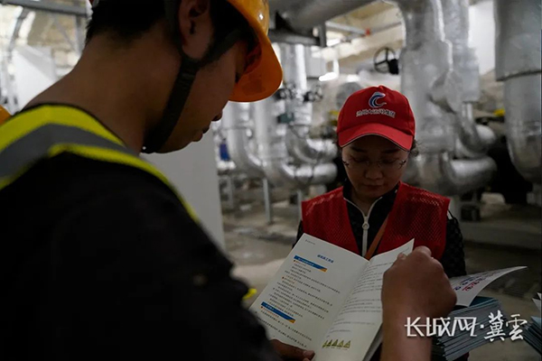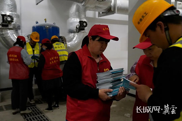 大運(yùn)河集團(tuán)志愿者向一線工人講解安全生產(chǎn)手冊(cè)。長城網(wǎng)·冀云客戶端記者 崔上 攝