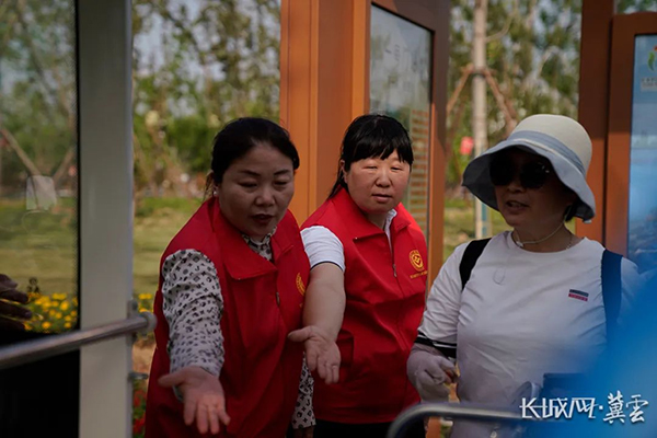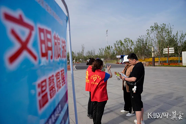 志愿者為游客指引道路。長城網(wǎng)·冀云客戶端記者 崔上 攝