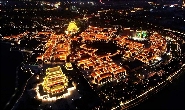 滄州南川樓文化商街夜景(航拍圖)。滄州日?qǐng)?bào)社供圖